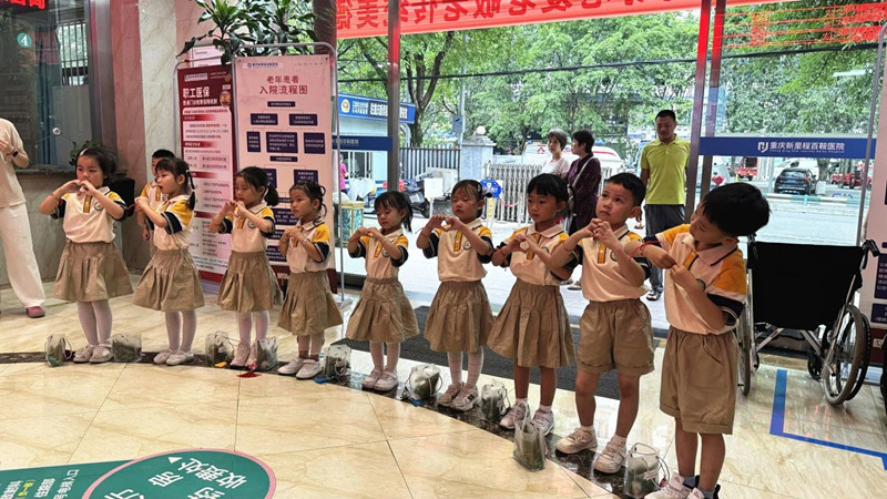 端午佳节前夕,玉带山幼儿园的小朋友们带着纯真的祝福来到重庆新里程百鞍医院,开展了一场别开生面的感恩医者活动。孩子们通过亲手制作粽子、香包、表演手势舞等方式,向日夜守护健康的医务工作者表达敬意。