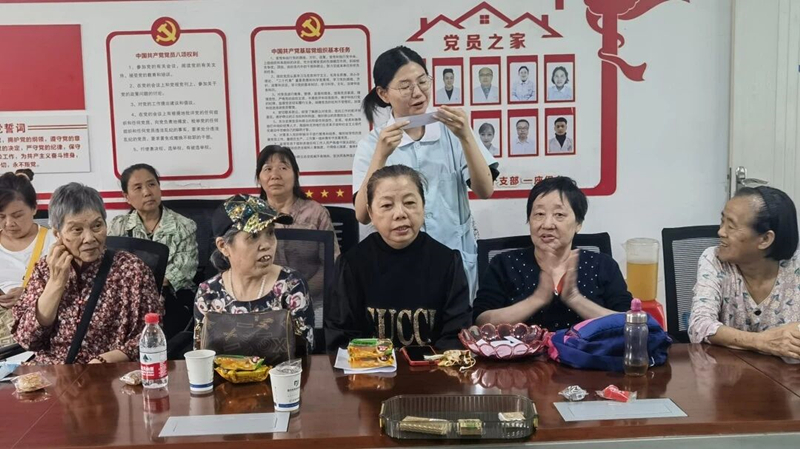 门诊部主任郭建英首先向到场的长者朋友致以诚挚的节日问候与祝福。随后她以轻松有趣的方式,为大家讲述了中秋节的起源与民间习俗,从嫦娥奔月的传说到月饼的演变,娓娓道来,引得在场长者频频点头、笑语不断。
